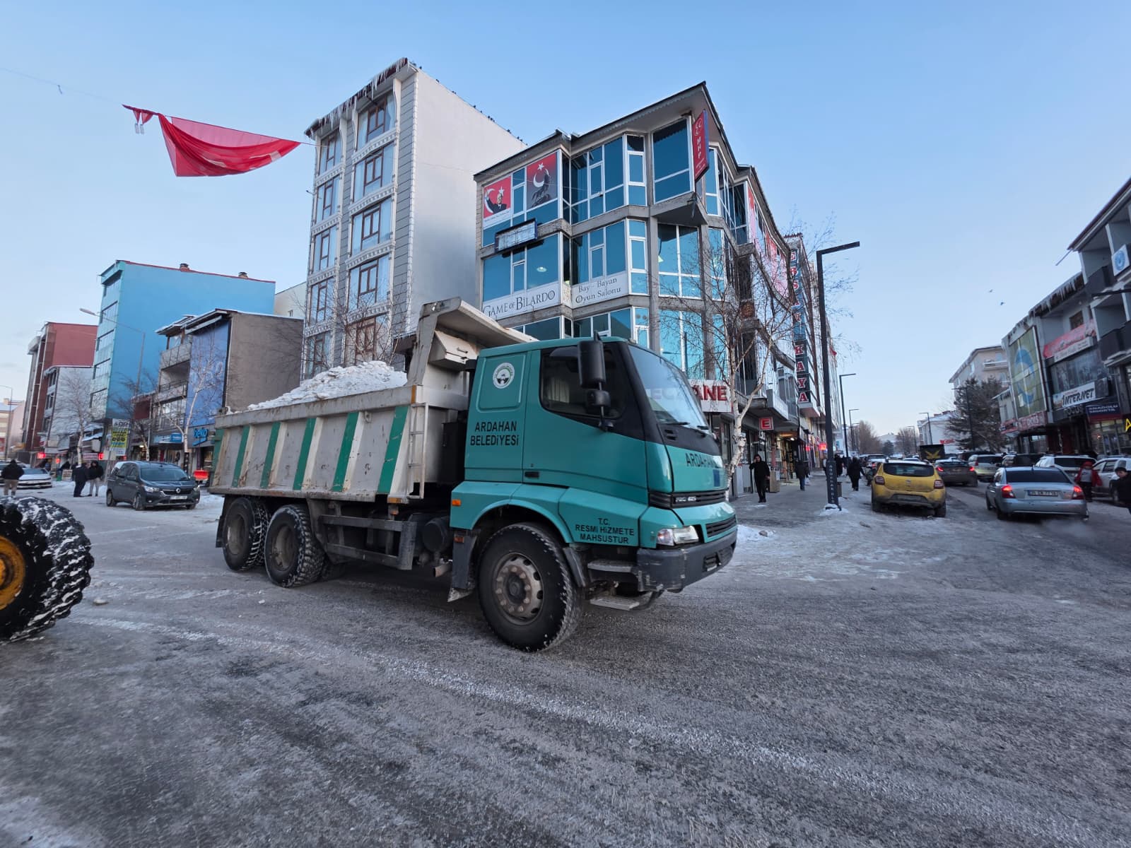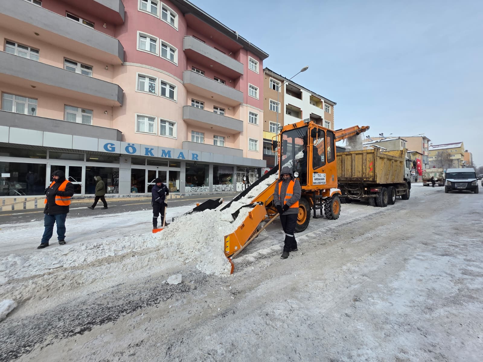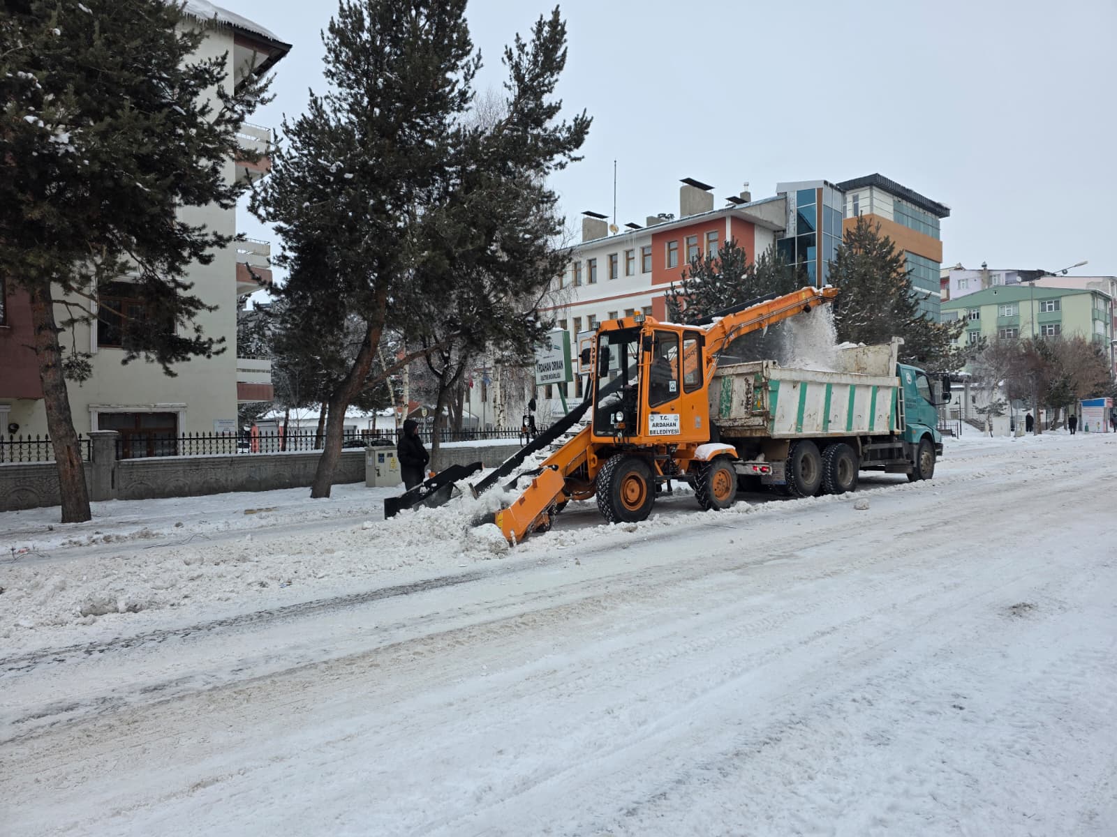 Ardahan Belediyesi ekipleri, etkili olan kar yağışları sonrası vatandaşların günlük yaşamının aksamaması için kar temizleme çalışmalarını kesintisiz sürdürüyor. Ekipler, kent merkezinde iş makineleri yardımıyla girilmedik cadde ve sokak bırakmıyor.