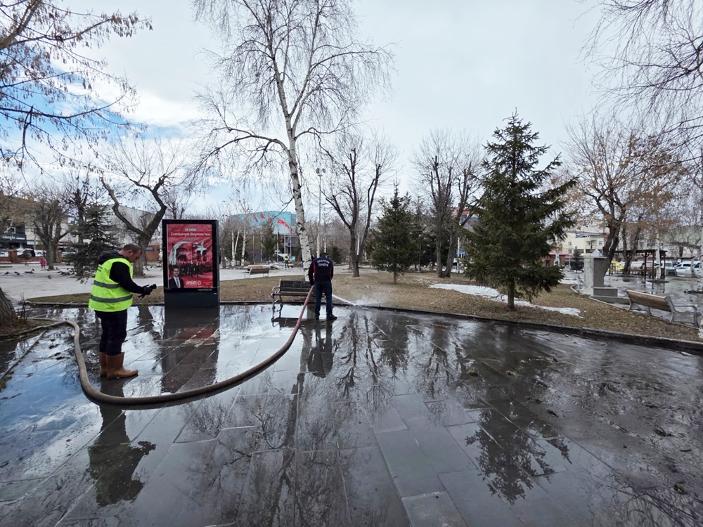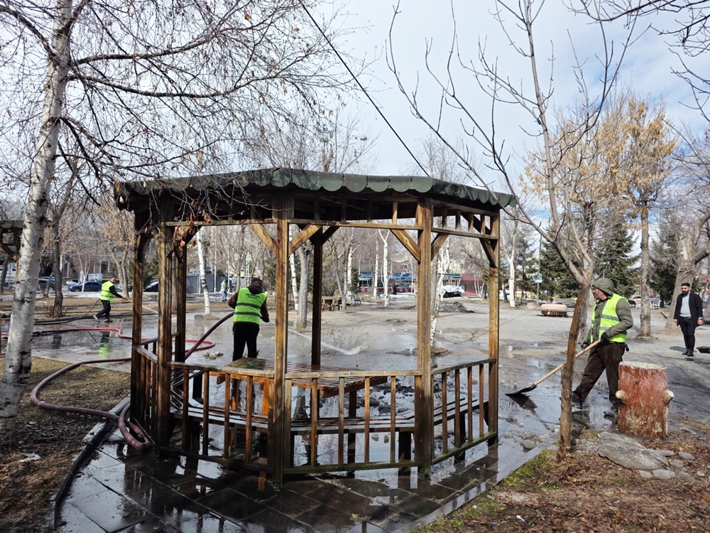 Ardahan Belediyesi ekipleri, havaların düzelmesi ile birlikte kent genelinde kapsamlı temizlik çalışması başlattı. Park ve bahçeler, tazyikli suyla yıkanarak yeni mevsime hazırlanıyor.