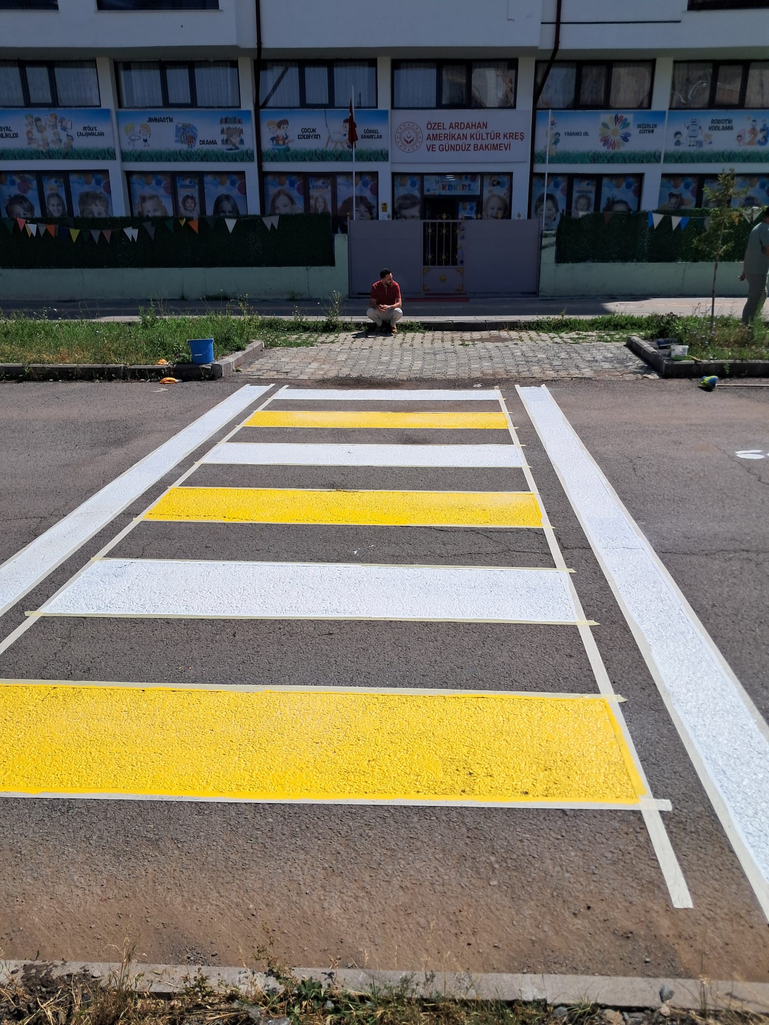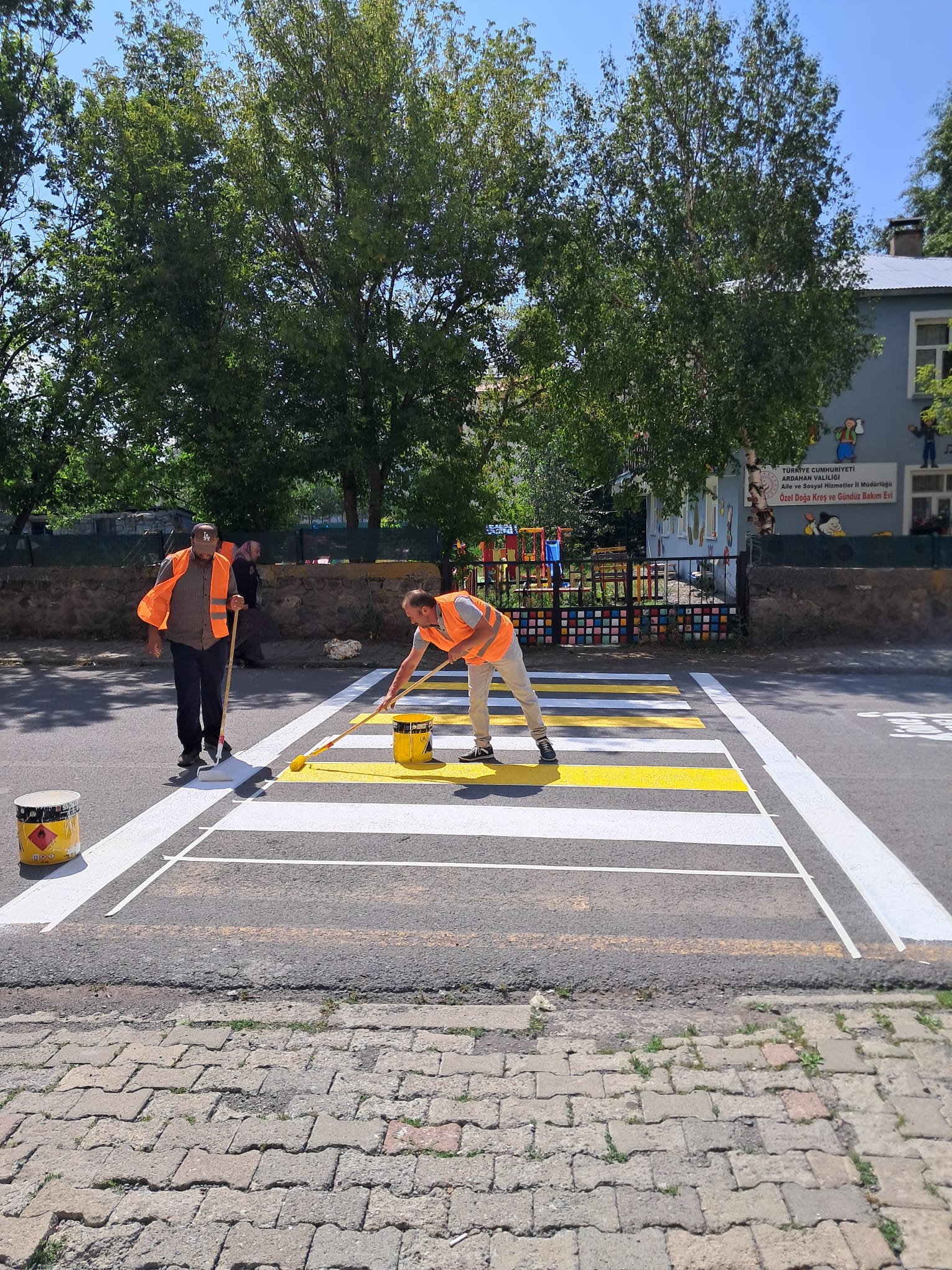 Ardahan Belediyesi Fen işleri Müdürlüğü ekiplerince, araç ve yaya güvenliğini sağlamak amacıyla vatandaşların yoğun olarak kullandığı yol ve güzergâhlarda yaya geçidi çizgilerini boyama çalışmaları gerçekleştirildi.