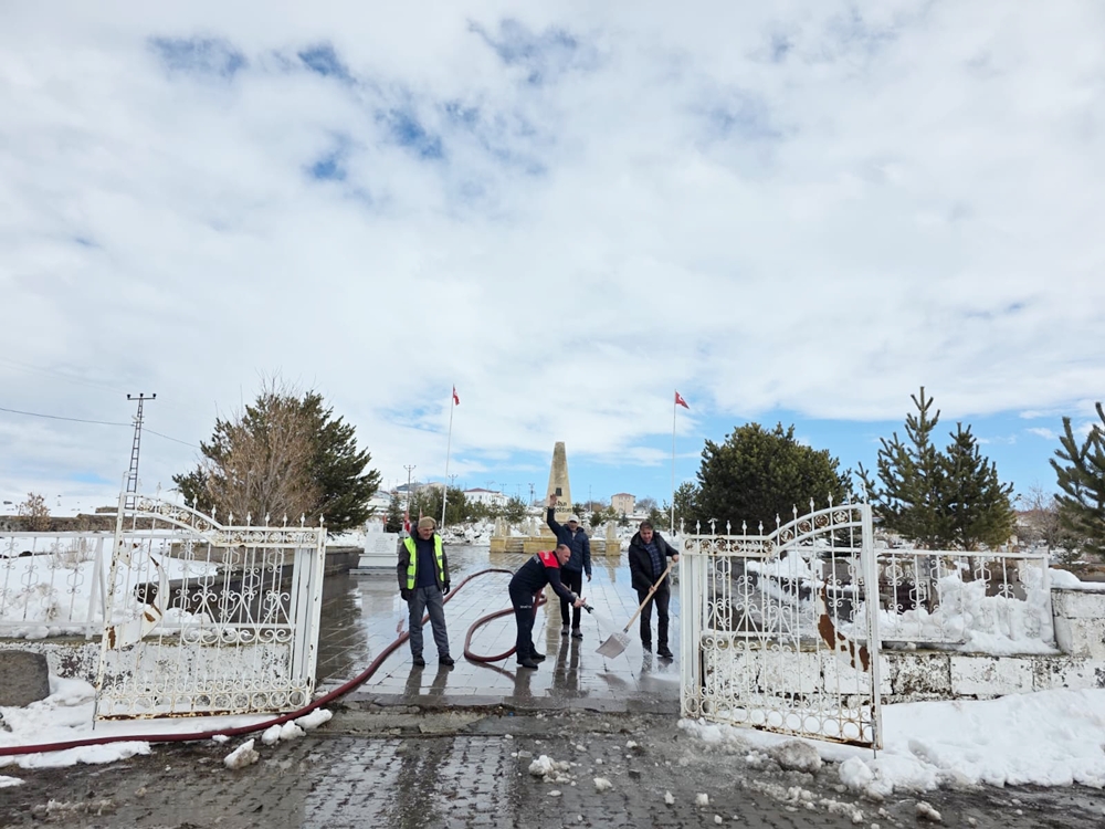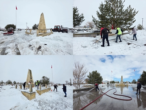 Belediye Başkanımız Faruk Demir’in talimatıyla; Temizlik İşleri, Destek Hizmetleri ve İtfaiye Müdürlüğü ekiplerince Halil Efendi Mahallesi’nde bulunan şehitlikte, 18 Mart Çanakkale Zaferi ve Şehitleri Anma Günü dolayısıyla yapılan temizlik çalışmaları kapsamında alandaki yoğun kar kütleleri iş makinelerinin de yardımıyla temizlendi. Kar yığınlarından tamamen arındırılan alanda son olarak yıkama işlemleri gerçekleştirildi.