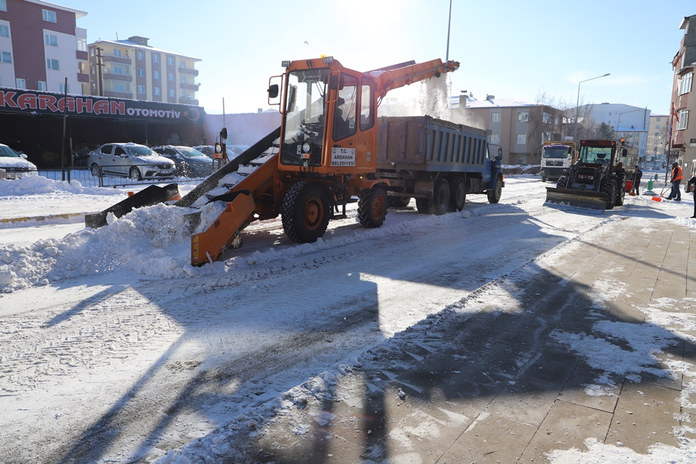 Ardahan Belediyesi Fen İşleri ve Destek Hizmetleri Müdürlüğü ekiplerince kent genelinde yürütülen kar temizlik çalışmaları kesintisiz sürüyor.