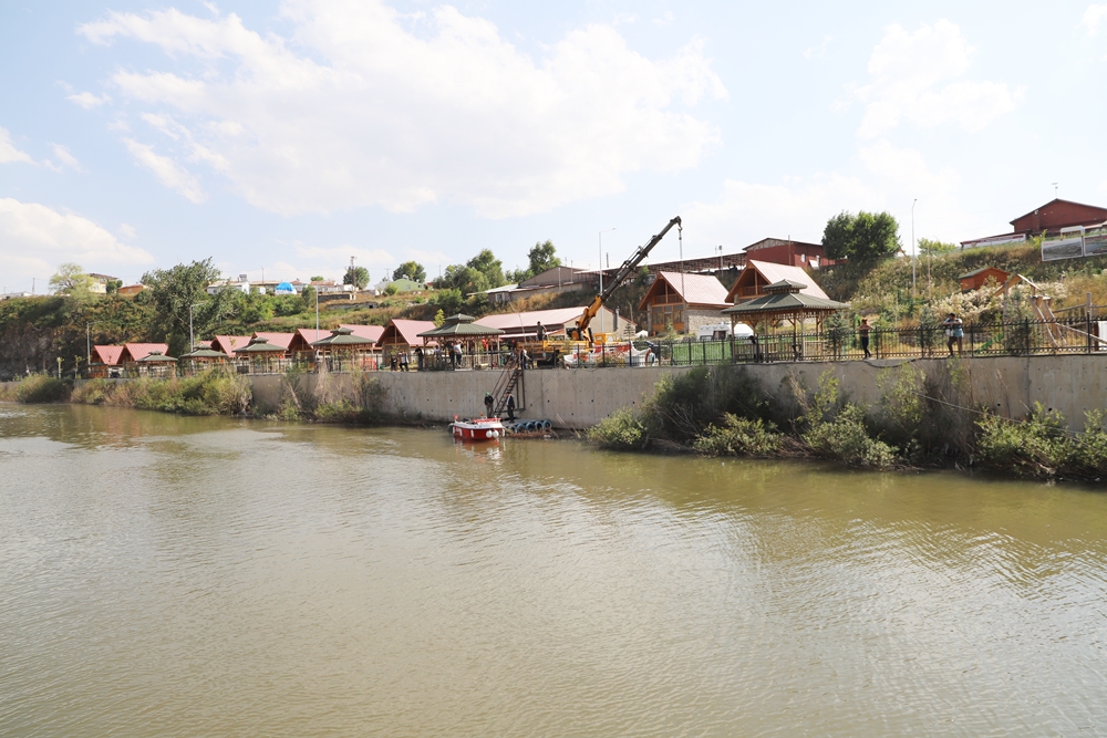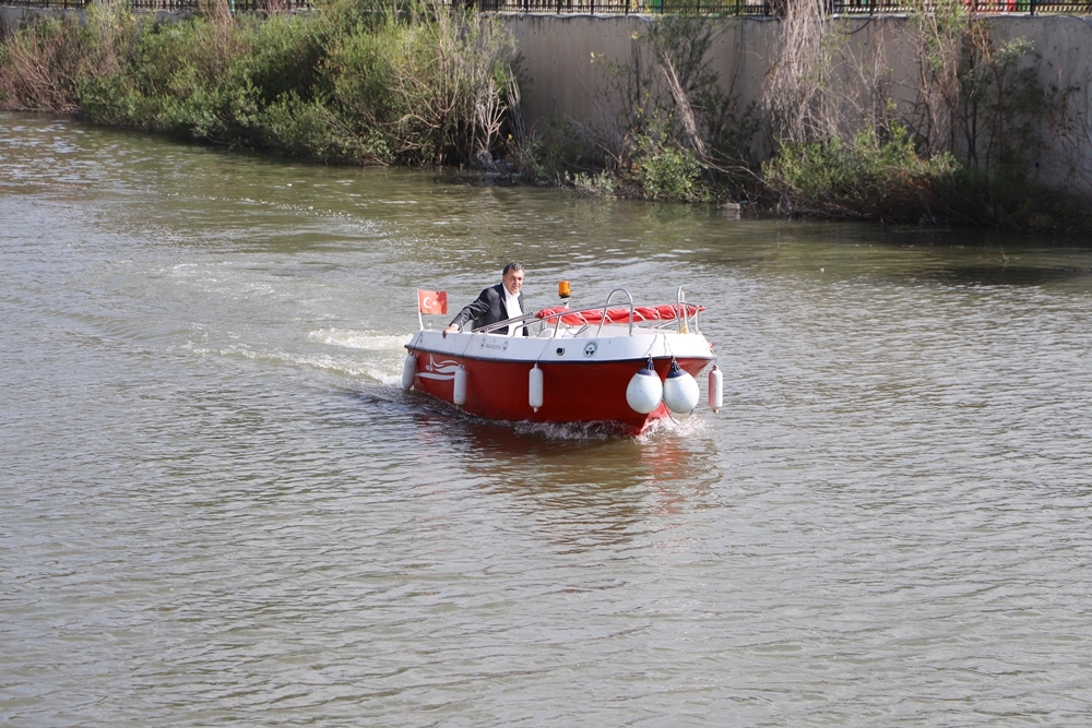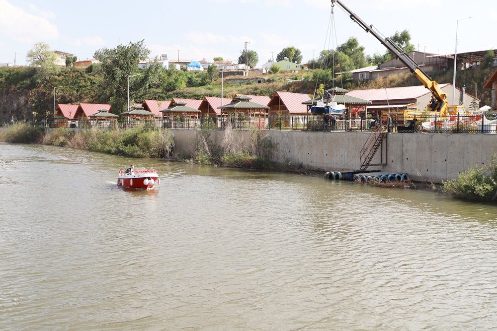 Salih Aktürk Sosyal Tesisleri’ndeki Bungalov Evler Sabri Erdoğan Asma Köprüsü yakınlarında teknelerin kura nehrine indirilme çalışmalarına eşlik eden Başkanımız Demir, kullandığı modern motorlu tekne ile bir süre nehir üzerinde tur attı.